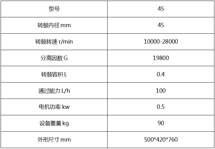 1、45型是管式分離機系列中zui小的一種型號。該機是專門為實驗室或小規(guī)模生產(chǎn)研發(fā)的,可替代杯式和試管離心機的設(shè)備。